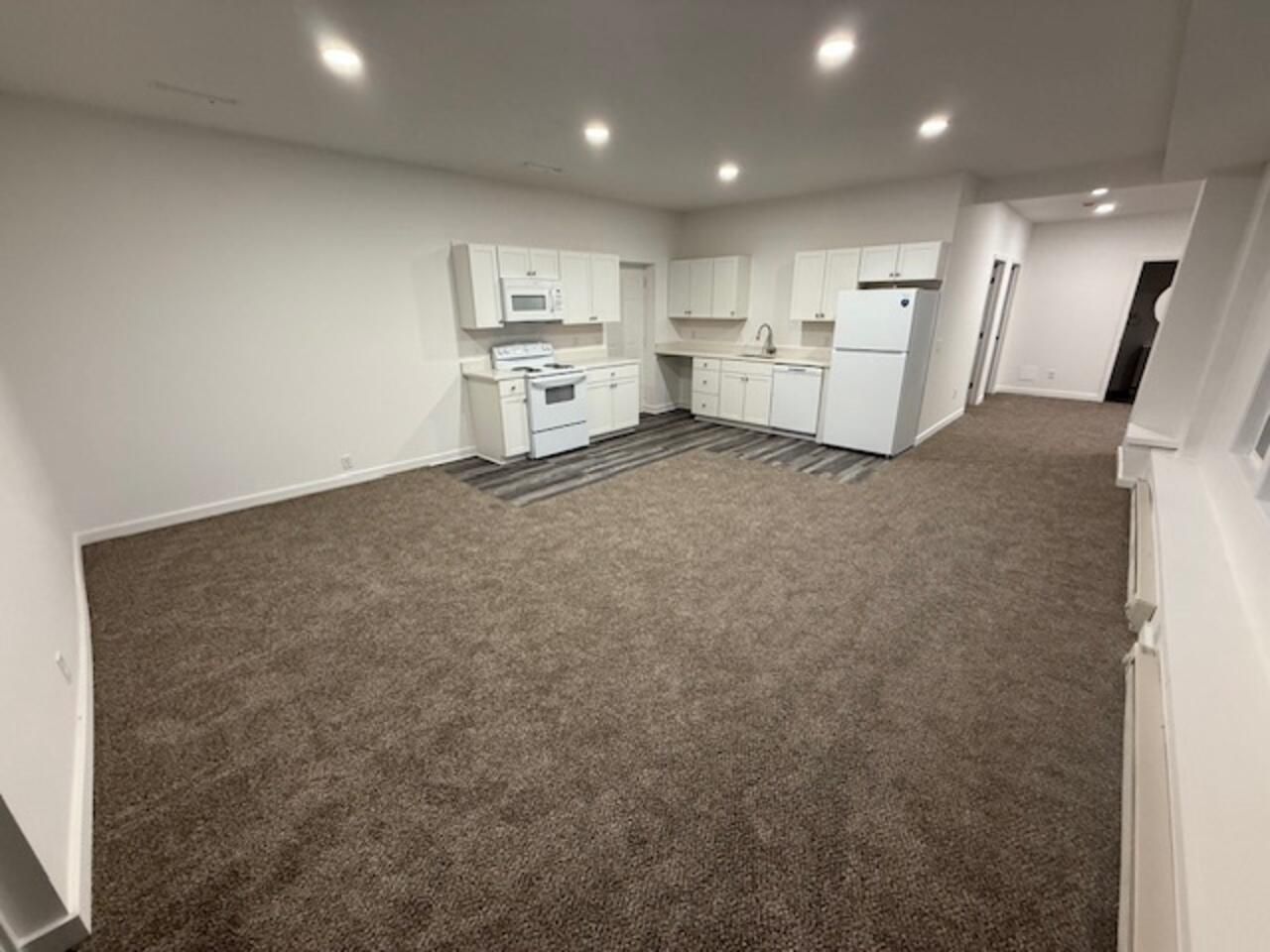 Move in to this freshly painted apartment with new carpeting and flooring. 3 bedrooms and one bathroom, with washer/dryer hookups for a stack unit. Kitchen appliances are provided. 600 or higher credit score and no previous evictions. Does not accept pets.