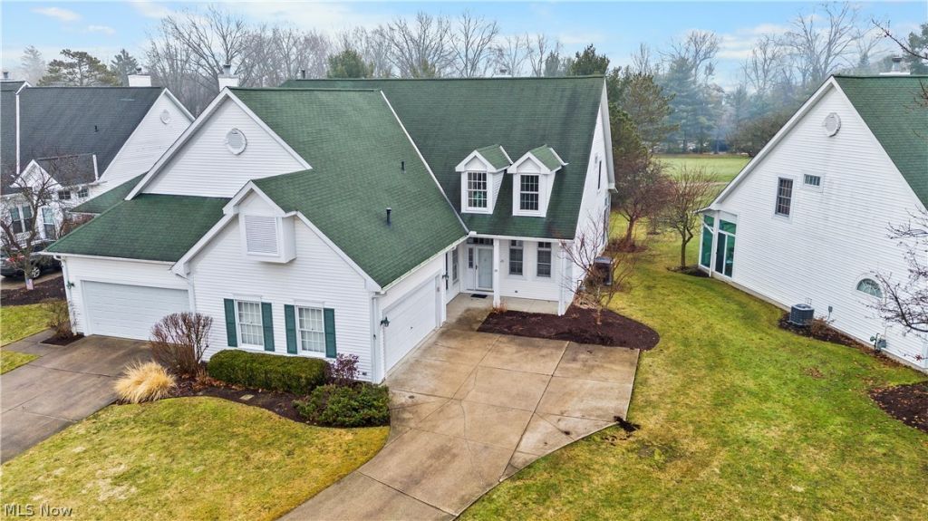 Stunning home on North Olmsted Golf Course with maintenance free living, lawn and snow removal included. Impressive living room with vaulted ceilings, gas fireplace and built in shelves- open to dining room. Eat in kitchen with breakfast nook and ample counter space. First floor laundry room. First floor primary suite featuring his and hers closets with attached primary bathroom, beautifully appointed with newer shower and bathtub- double sink, enclosed sunroom off the primary suite overlooking the 9th hole. Two nicely sized bedrooms with a full bathroom on the second floor. Full basement provides extra living space and plenty of storage, radon mitigation installed. Natural light flows through out the space, windows are large and thoughtfully positioned. Home is a rare find in this golf community offering a full basement, 3 bedrooms, 2 full bathrooms and a half bathroom.