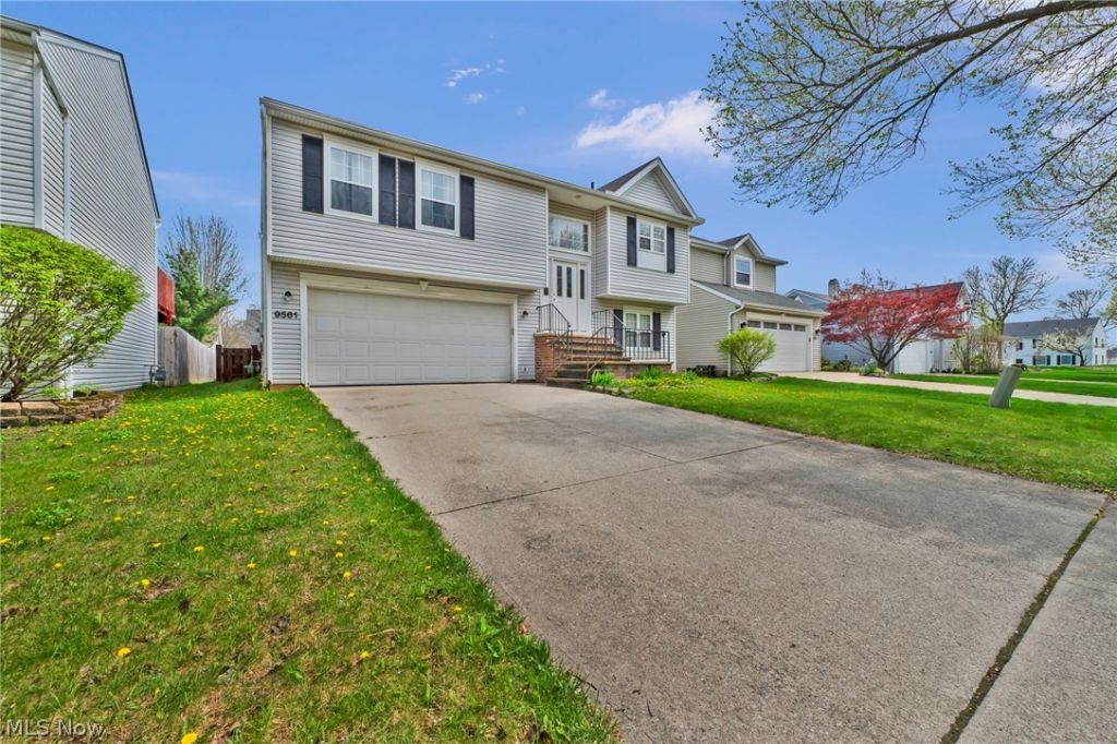 Welcome to 9561 Cyprus in beautiful Olmsted Falls. This home boasts richly colored vinyl plank flooring and freshly painted rooms throughout. The kitchen just had a makeover with fresh white cabinetry and stainless steel appliances which stay. There is plenty of cabinetry and counterspace for any chef. Enjoy a cozy evening at home in front of the gas log fireplace in the living/dining room combination. Two bedrooms on the main level share a newly renovated full bath (2025). On the lower level, there is the home's third bedroom plus a large room with a full bath that could be a second master or a family room. Sliding glass doors walk out onto a covered patio. The two car garage will protect your cars from nature's elements and a large, lockable storage room is at the back of the garage with the home's utility space. Sliding glass doors in the living room let in tons of light and lead out to the low-maintenance composite deck. Stairs lead down to the fully fenced backyard. No HOA! Convenient access to schools, shopping, and local parks. This home is move-in ready for its new owners.